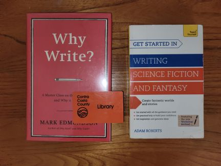 "I went to my local library and checked out several books to read. For this level, I read the books: Why Write by Mark Edmundson and Getting Started In Writing Science Fiction and Fantasy by Adam Roberts.