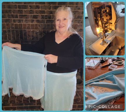 "I bought fancy satin glitter fabric and lace to make my fancy aprons.