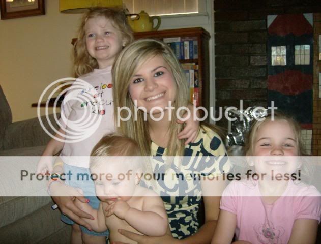 On the closest end is my mama and baby Cambree Rayne aka Cambree Bee or Cambree Ray and at the other end is Chloe Elizabeth aka Chloe Belle; each nicknamed by their Aunt Cherry-Chipper-Cupid-Sister!