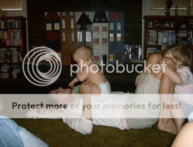 Aunt Cherry getting a work-out playing "Ride the horsey down to town..." with the chickies!
