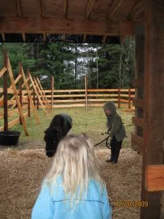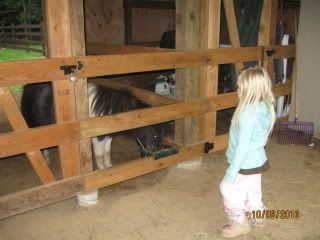 We left the front of her stall open so the kids can help even more. We planned it so we could see her when she was in there with out opening up the doors. It turned out great b/c the kids can feed her on their own with out being in with her. She is a digger, she paws at the ground as she eats. We need those stall mats mentioned above. If you look closely at the place she is standing she has about a 3 inch deep area where she's dug out her plate. We are always taking little stones out of her eating area.