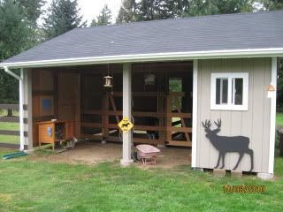 The only thing is, in the winter I have to brace the west side door as it blows open in a stiff winter wind, and then at least once a winter the sliding door on the east side will ice shut on me, and I have to crawl in thru the upper part of the stall door. LOL! A friend said he wanted a video of it...haha . I do wish it was bigger, but heck I'm lucky I got what I do! Good luck with yours!