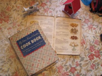 My Mother age 94 gave me a couple of her older cookbooks. Older--yes. I remember lokking at the pictures in the smaller book. Loved looking and of course she was a great baker. The little one is called: Any One Can Bake (for the young housewife). She got that from her Mother when she married in 1934. The larger is The Better Homes and Garden Cookbook she got in 1936. The are well used and full of clipped recipes and hand written recipes.