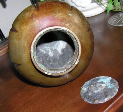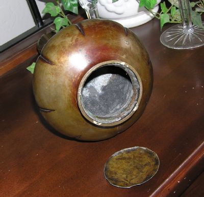 Hi gals! I'm posting this here, because I'm usually here, and I thought one of you might have this info. I came across this old "vase" that belonged to my Great Aunt in San Francisco. I'm not sure of any other info however and it's really got me stumped because the bottom is detached and it looks like it could not hold water. So.....my question is....what is it for??? If anyone has ideas, I would appreciate it much!! Thanks!