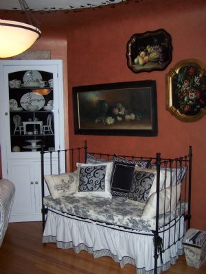 .JPG) This one I made out of an old metal crib. I just removed one side and found a crib mattress at Ikea and made a slip cover for it!