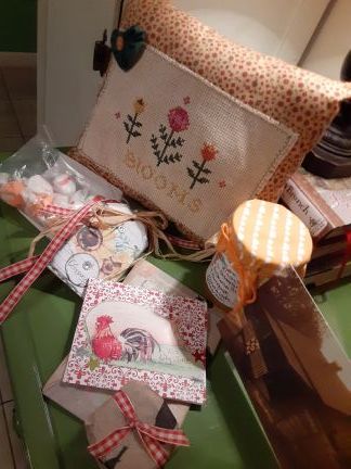 Thank you Winnie for the Wonderful Farmgirl Box! and for including My little farmerette! Lily June! I will see her on Friday to share it with her! I love it all! Biscuits and your Marmalade tomorrow for Breakfast! I love all! salt Water Taffy and Orange Creamsicle is my favorite! Like taking a bite out of Summer for Sure! I got a new sofa cover that needs a pillow and this one is Farmgirl and too precious, I know how tedious counted cross stitch can get! Thanks you for thinking of me!