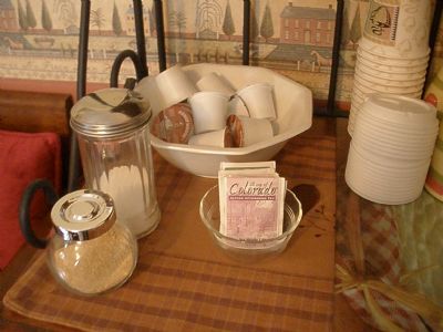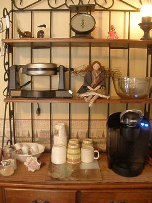 I get inspired very quickly when I receive something I truly enjoy. My friend Debbie sent me some Colorado Tea's that I just love. So I transformed my Bakers Rack into a Tea/Coffee server. This will drive my husband crazy, cause I'm always changing things around and he is never able to found things. lol.
