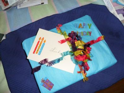 Dirtdutchess, thank you so much for the wonderful package. It was a great surprise and I loved your mail art card. The stickers are wonderful and the cute little purse with the ribbon in it and the great ATC card, wow and the altoids and the stationary with the bookmark. I wrote letters right away. The soap is cute and my grandson offered to bath with it for me. I loved hearing about you and your family and your ranch.The birthday stamp is really cute and I shall use it. Thank you again and enjoy those cows. Maybe a picture would be nice.