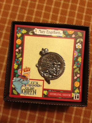 I have a Mary Engelbreit pin I would like to get rid of. I thought someone on here might like her stuff so I thought i would offer here first. She was my favorite artist for a very long time but I have just kind of grown out of that taste. It's a little bigger than a quarter and says "It's Good to Be Queen". Pretty hard to find as I understand. Very cute, just decluttering. Never worn, new in box, box included. Just make an offer. :)