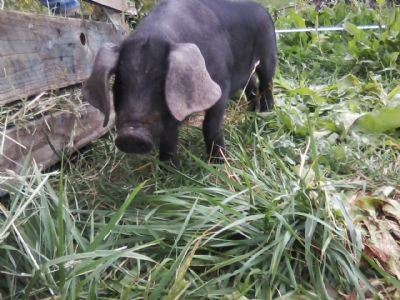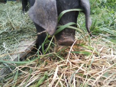 My honey and I got another pig :) This one is the Large Black gilt for breeding with Endeavour. Rosie is a bit jealous right now and we are hoping that she will overcome. Endeavour is protecting Trudy (he did this with Rosie when we first got her). Trudy is almost 2 months old and is such a little sweetheart :)