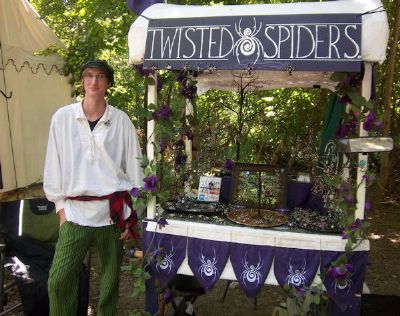 Loved this kid - he was SO nice! The spiders are gorgeous. You can find them online at www.twistedspiders.com.