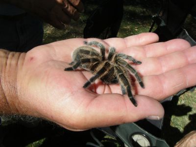 hahaha! I have to be honest,,, I have no intension of making a pet out of any spider in the near future... I had to swollow hard and pretend it didn't faze me...didn't want DH to think I am a woos!!!! The critter was docile... but I did make sure I went the ladies restroom first before holding the tarantula! lol!
