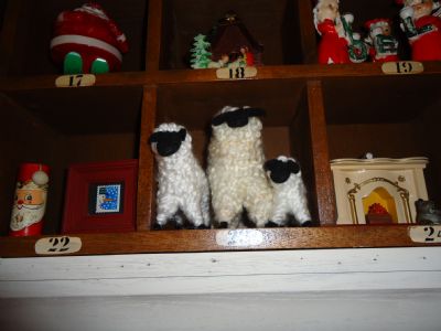 Brenda Wheeler made the sheep! and I got a big surprise today on Teri-Kysheeplady's Birthday, (Happy Birthday Teri!)she ordered the Gray one for me and had Brenda mail it to me! Thanks Teri!!  Teri, you are so right! Red barns and Snow!