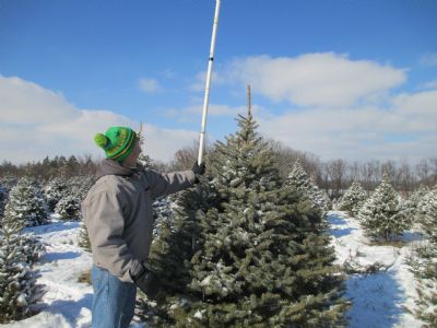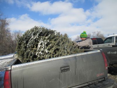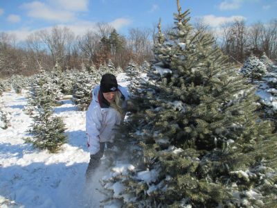 Last weekend we made some hot chocolate, turned the radio to a station playing Christmas songs and took off to get a tree. It was about 20 degrees with lots of sun and no wind - PERFECT - because it had snowed the 2 days before. We don't have as much as they did at the tree farm, but I'll take what I can get :)