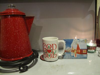 On December 13, we have celebrated St. Lucia Day with making the famous saffron Lucia buns for breakfast. In this photo, you can see a picture of a St. Lucia procession on the match box and a mug with the norwegian Christmas greeting God Jul. This celebration was the mark for when the tree got put up in our home which is arbitrary but how we decided to order the month.
