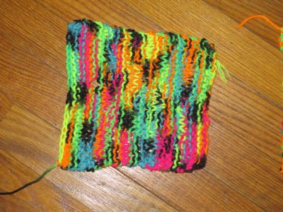 Here's the first one I made (with needles that were way too big) notice how it's not square!?!