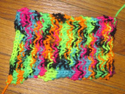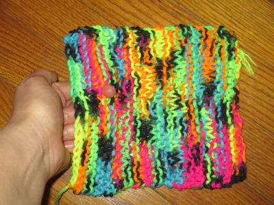 Second one turned out better (used smaller needles) but it really looks like a very short scarf rather than a dish cloth. Oh well, at least it looks like it's supposed to!