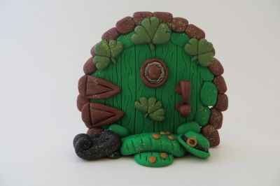 I wanted to do something for St. Patrick's day and this is what I came up with. I really like this one. Can't you just imagine a little leprechaun removing his shoes and hat before he steps into his snug little home? Although I don't think he is going to be too happy when he realizes he left a trail of gold coins behind. This littld door is approxamitely 4" by 4" inches and is ooak and handmade by me. If anyone is interested in winning it just leave your name below. I will have a drawing for it on Saturday and will get it out to the winner on Monday or Tuesday (it all depends on what the weather is like around here)