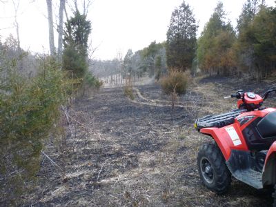 My son called and said he was on his way to pick up my grandaughter. Meanwhile I had my oldest son go and check out what all the smoke was before he left for work. Well the fire had gotten out of control and was now racing across our property. We have a total of 63 acres. We have about 20 acres between us and the neighbors trailor they rent. I called 911 and about that time my son and his wife were here to pick up their daughter. I raced up the hill with my son on the quads with shovels.