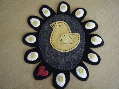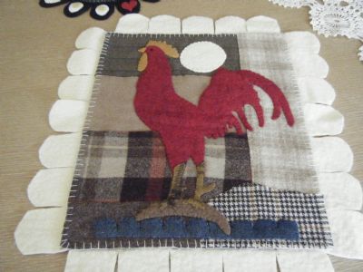 For those of you who know me,,, know I love wool fealties/penny rugs etc... Well for my b-day, my dear sweet (former) neighbor stitched these 2 up for me.