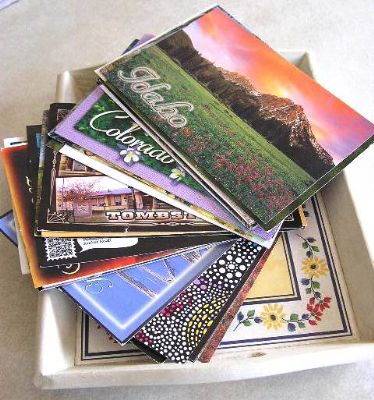 You can purchase postcards at gift shops, restaurants, retail stores, gas stations, visitor centers, etc. You can also take a favorite photo of your own and have them name into wonderful postcards. I have done this using the website, postcards.com. They are very well done, great quality and not expensive.