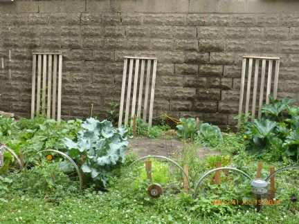 I saw a futon frame in the alley. I took it apart and used the frames for trellises. Total savings - $300+