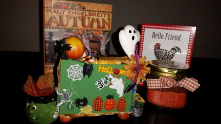 I received a nice surprise in my mailbox yesterday. Thank you so so so much for the beautiful ATC Halloween/Fall block, Fall napkins, Fall stickers and Hoppy Halloween card. I love the little hidden ghost in the pumpkin and the fall tree and EVERYTHING about the block. Your block will go out no later than Monday. This is my very first ATC of any kind; I hope you enjoy the block I made. You might find it a little different than yours, since I had never done this before? Got you curious now? LOL!