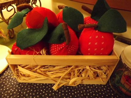 Oh Connie I'm so happy that you got your package and everything was just fine. Glad that you love it. I really enjoyed making everything for you. When I made the apples and put them in the crate I was thinking about you using it as a centerpiece. Glad that your doing that. Enjoy your apple butter with the biscuits tomorrow. Enjoy and time for apple season. Can't wait till I get mine. Hugs, Laurie