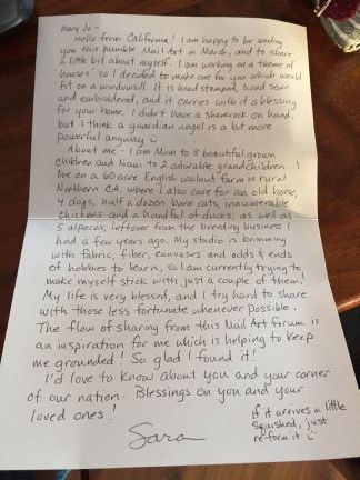 SARA FROM BIGGS CALIFORNIA! Thank you so much for the wonderful window sill house art with a beautiful blessing. The letter was an added treat to an already awesome package. I am a very grateful receiver of your talent.
