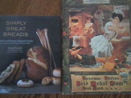 More cookbooks: ~Simply Great breads: Sweet and Savory Yeasted Treats by Daniel Leader. Hardcover ~Christmas Edition Gold Medal Flour Cook Book. Softcover. Printed in 1970, good condition with the exception of a couple of stains from cooking from previous owner. TAKEN