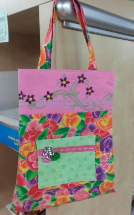 Flower detail at the top is machine embroidery