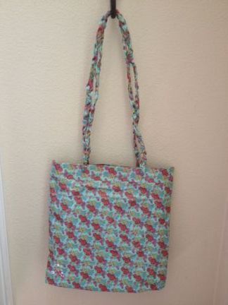 Look what a farm girl in Maine does with duct tape! I think my fiber friend Aimee wins the prize for meeting the challenge portion of the month. Who knew they made flowered duct tape?