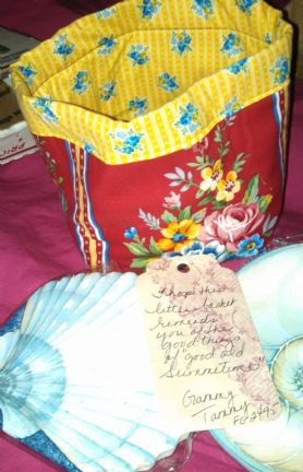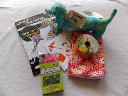 Hurray! I got the package from April today! I love the sweets, the coaster will sit under my iced tea,the towel will be for special dishes, and I'll take the pen with me to work. Have a great summer!