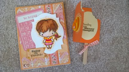 Received my June mail art from Marilou in Canada today!! Thank you, Marilou! The scrapbook style popcicyle card on a stick was adorable and your summer be happy scrapbook style card was soooo cute. So bright and cheerful! I really enjoyed reading the letter you sent also, thank you - your penmanship is perfectly beautiful! I was at the post office this morning and my post lady at the counter hinted that I had a package out for delivery today, she said it was so pretty it caught her eye! Your doodles and art work on the front of the envelope were so pretty! Thank you for such a cheerful package! You made my June! XO, April