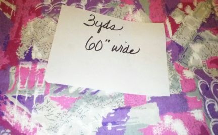 First piece is 3 yards of 60" wide heavy cotton in a pink, cream and grey pattern.