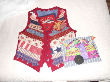 Got my mail art today from Marilyn Godfrey, OH my, you have outdone your self. I Love the vest and the wall hanging, The wall hanging goes with a quilt I just finished.  The vest is reversible which I love.