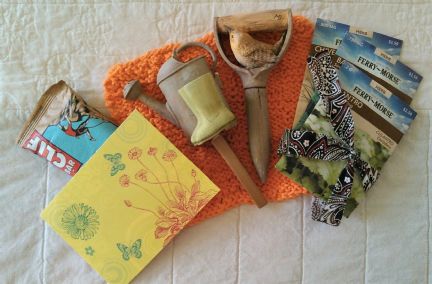 Angie thanks so much for the handmade dish rag, adorable Marjolean Bastien plant stakes, herb seeds and cliff bar! These will come in very handy for adding some sparkle to my garden. I was just at the store looking for cilantro seeds last week and they were sold out for the season so this was a wonderful surprise!