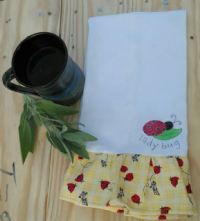Here is a picture of the towel I sent to Jami. I however forgot to take a picture of the buttons I made. So glad to hear you like them.