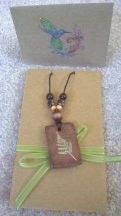 Marilyn, I received my pendant today, thank you so much! I put it right on with what I was already wearing! I loved how you shared with me you took a walk in the woods to find inspiration and brought back some plants to press in clay. Thank you for such a beautifully inspired piece of our Northwest! I love my sparkly hummingbird card as well! XO, April