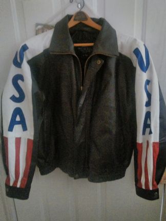 Very nice leather jacket in real good condition for Barter, it is an XL, a man or woman can wear it. It use to have a liner but I no long have it, it it is a nice, warm jacket.