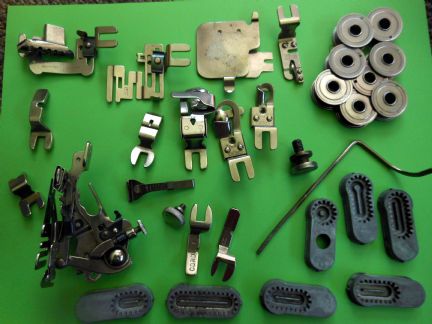 Heads up Farmgirl sewing machine collectors!! While downsizing I found a box of sewing machine attachments. May have come in an estate box. Anyway, I don't have a machine for it. First call will get these perfect condition parts. "Greist" is on some of the parts. Bobbins are 1" across.