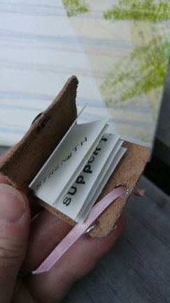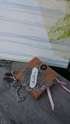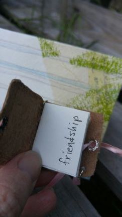 Saturday I was in kind of a funk, but when I went to my mailbox and found a great letter and this absolutely gorgeous necklace that Sara made, I was blown away by both her talent and thoughtfulness! I love everything about it, it's tiny, it's a book, it's a necklace, leather, beads, nice paper & the words and effort put into this project just move me. Thank you so very much! You certainly should make some more of these treasures, excellent gifts.