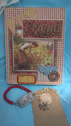 I received the most wonderful package in the mail today. My sender tells me this is her very first mail art to do and let me tell you she did a wonderful job. Really cute book she made and two braclets that she made. Cute friends tags and a little book that I will carry in my purse. My mail art person did a wonderful job. Thank you for making my day.