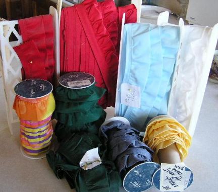 Lots of ruffled trim up for someone who can use it. I've used a lot of it on aprons, but won't be using this. It's ready to sew on, just like sewing on extra-wide, double fold bias tape. Great for aprons, curtains, dish-drainer mats, clothes, all kinds of projects.