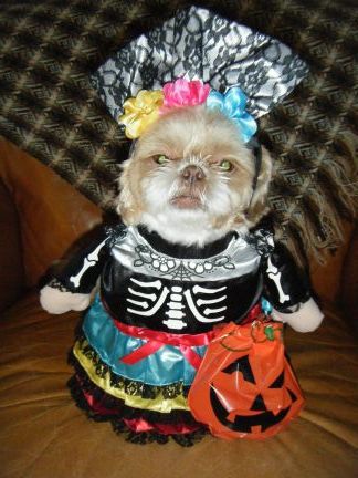 What a cute outfit your sweet pup put up with for Halloween!! She is really darling all dressed up but I totally understand what she felt a whole lot idifferent about the matter!! LOL!! We used to dress up our yellow Lab on Halloween, but he seemed to be OK because it meant he got to go with the kids and Trick or Treat!!