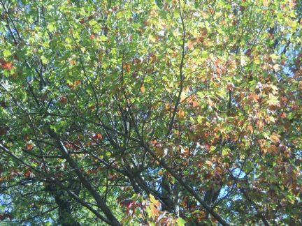 Ummmmm, our deciduous trees are just now thinking about maybe turning colors. My Southern Red Maple is as green as can be and the Shumard Oak has a few yellowing leaves here and there. The Cyprus trees are now starting to turn their beautiful rusty brown which is quite pretty in certain angles of sunlight.