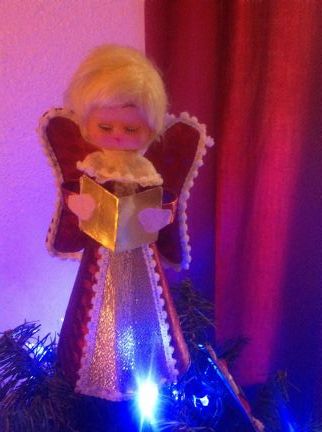 Sweet angels NancyJo. I love the crock/bowl that your plant is in. I have saved many of the little Christmas things that my mom and dad had. I love them. They remind me of my childhood Christmases.