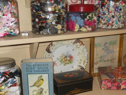 Love your buttons, beads, ribbons, etc collection! And it's very organized! I wish my craft room looked like that.