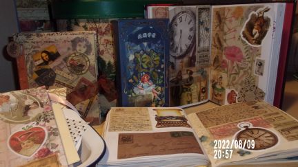 Nancy, at least your addiction leads to beauty!! Your journals are so pretty and fun to look at. They are each unique and colorful and I have no doubt it is fun to create these collages.