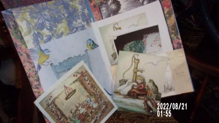Every once in awhile we like to Remember Tasha Tudor. This picture is a folder I made. I covered the whole folder with Tasha pictures and the inside are pictures I printed out. I have five of her books. Once in awhile I get them out and look at them again. The folder is down by my craft spot. Rain here today, we need it So that's OK. I tried to take pictures of her books but the glare from the covers made them blurry.